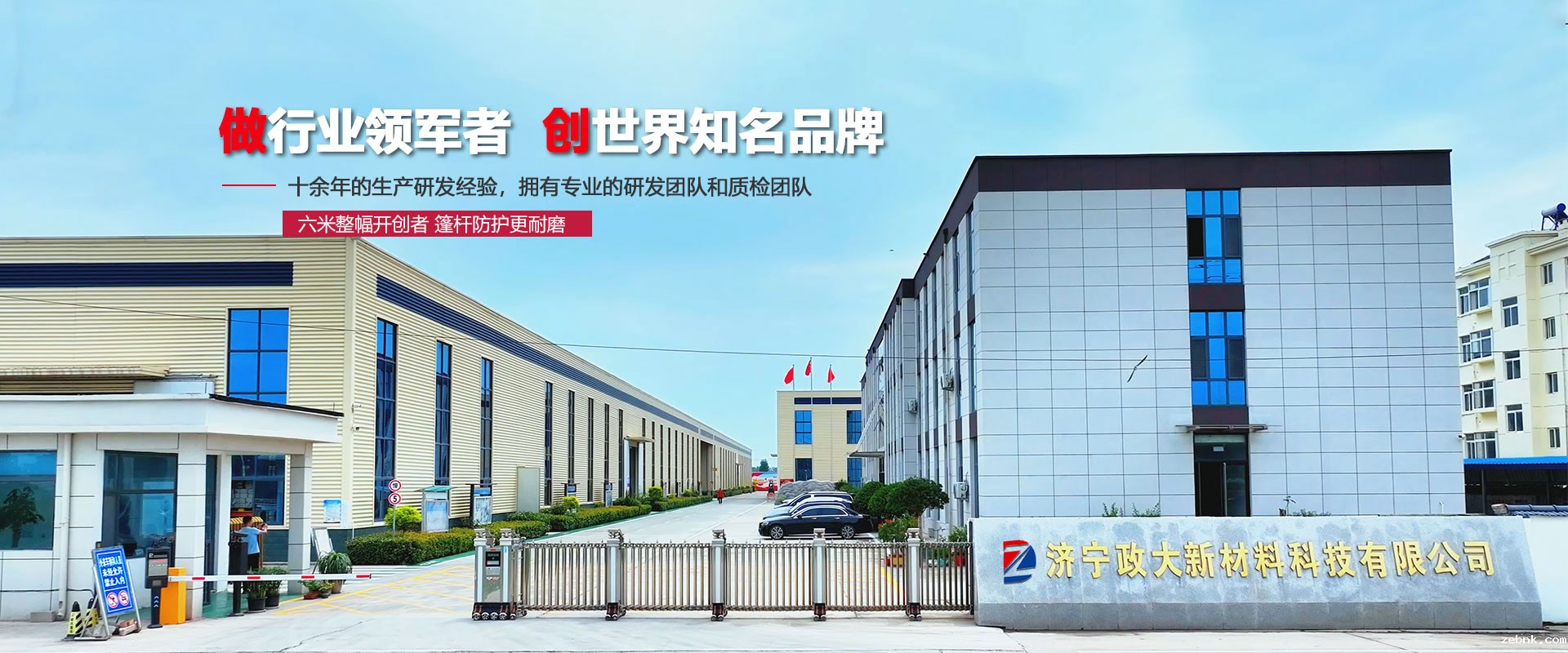 济宁政大新材料科技有限公司,成立于2020年,位于山东省济宁市,公司专业生产加工各种高端PE面料篷布,十余年的生产研发经验,拥有专业的研发团队和质检团队。
